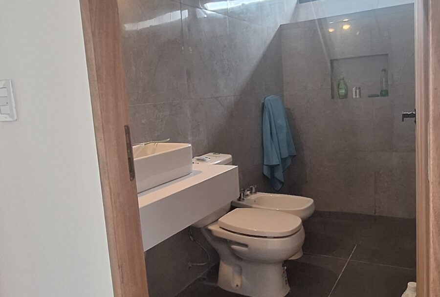 * Baño completo con revestimiento porcelanato, griferias FV y artefactos ROCA