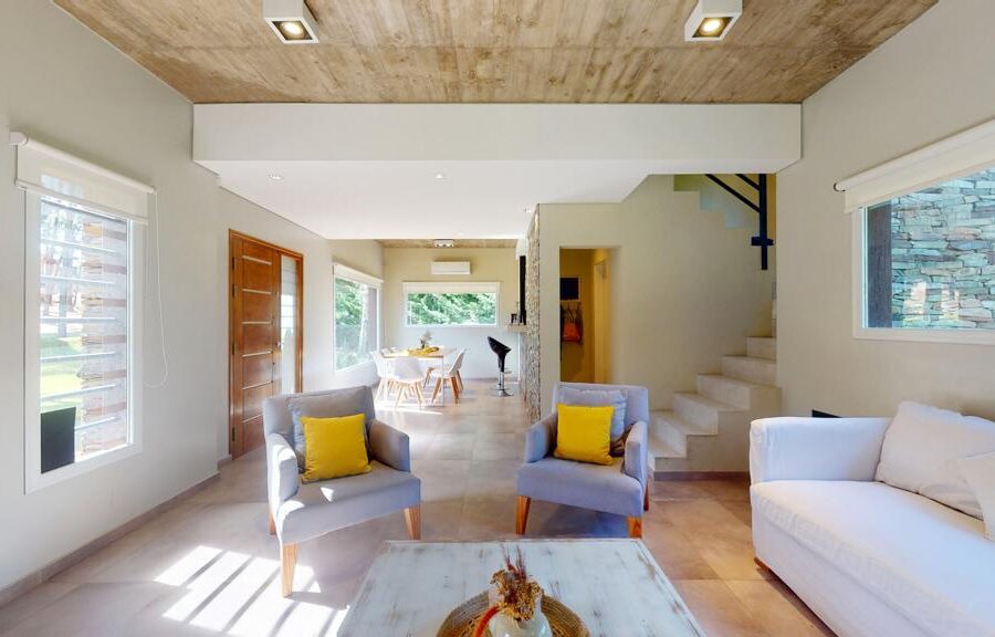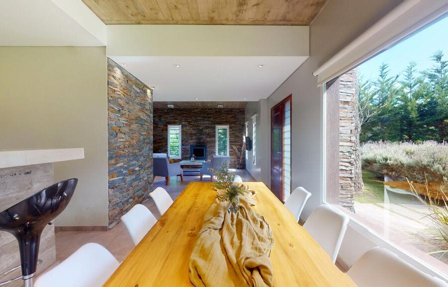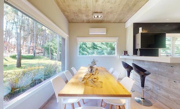 Casa en venta de dos dormitorios en Mar de las Pampas. La misma consta de dos habitaciones con placares y balcon cada una, equipo de a/a frio-calor en las mismas. Cocina con muebles sobre y bajo mesada, comedor con equipo de a/a frio calor, living con estufa tromen y equipo de a/a frio calor, toillete, calefaccion por losa radiante. Quincho cerrado con ventanales de aluminio A30 DVH, parrilla, baño completo, lavadero, equipo de a/a frio calor. Lote completamente parquizado, riego automatico por aspercion, 2 bombas sumergibles (una para el riego y la otra para la casa).