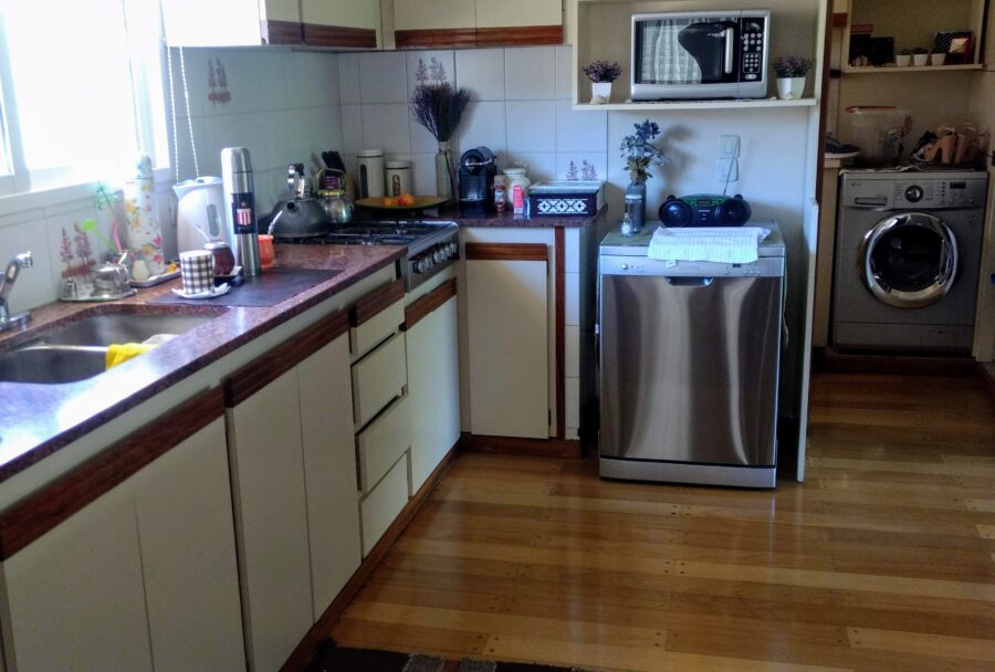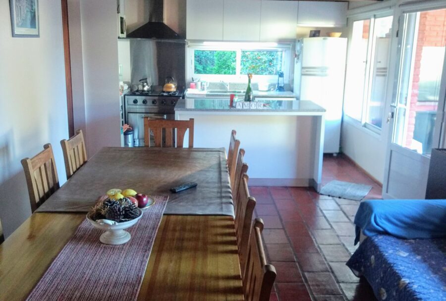 Al interior, la casa esta compuesta por una cocina comedor separada por barra, un amplio y luminoso living, tres dormitorios, el principal en suite y con vestidor, y otros dos baños completos.