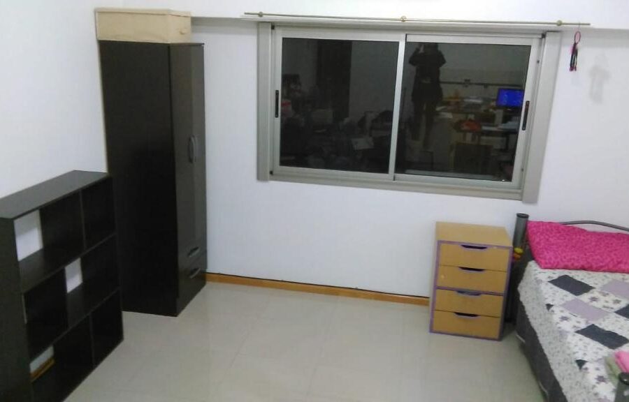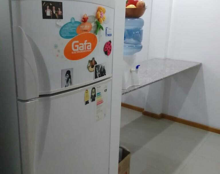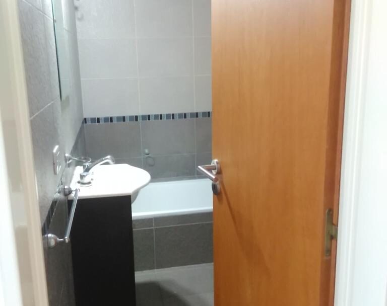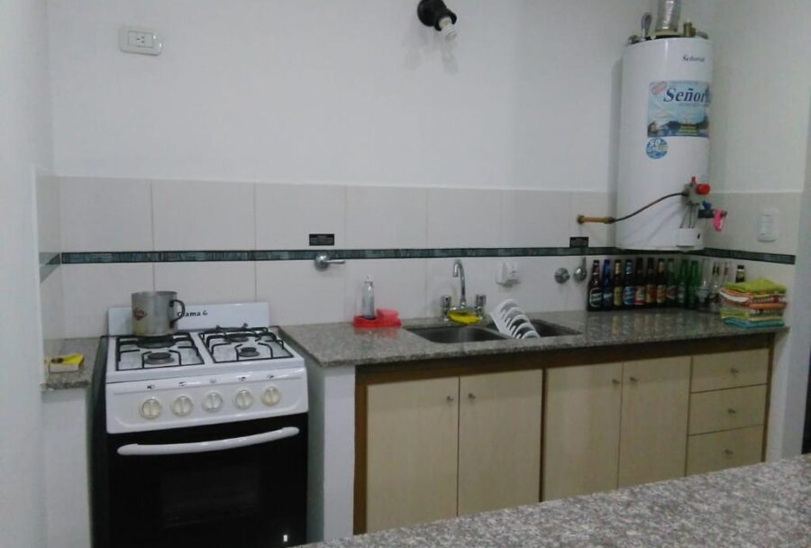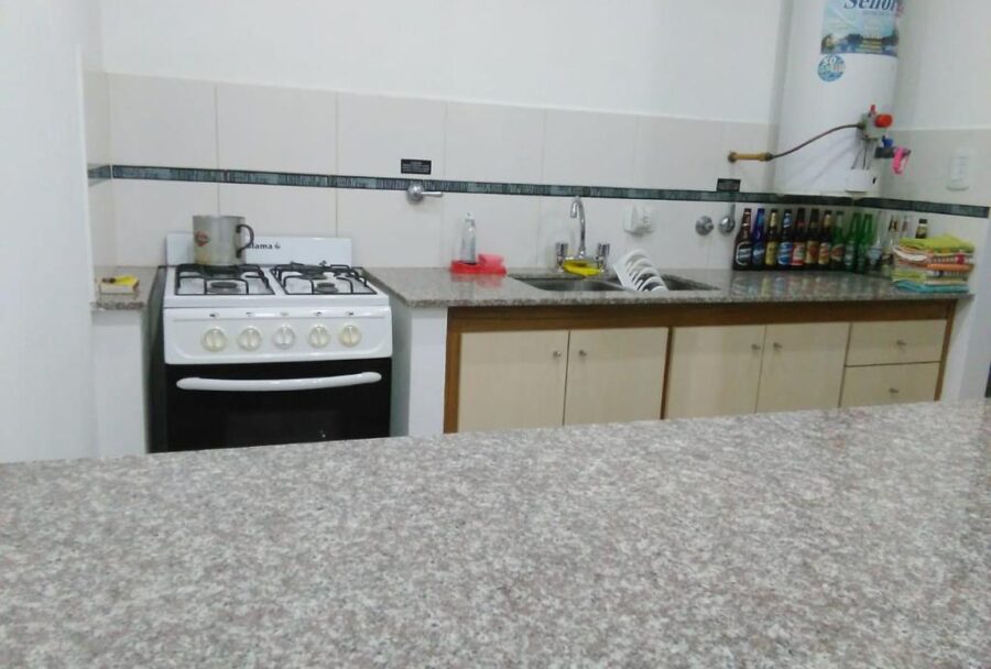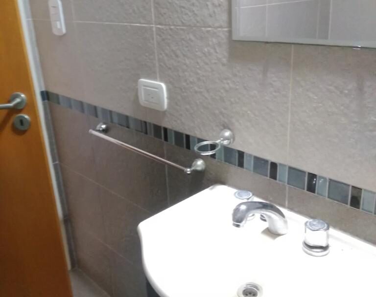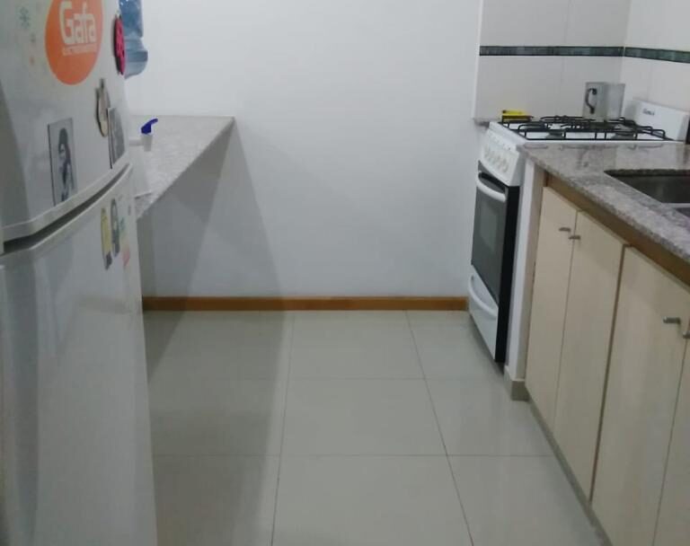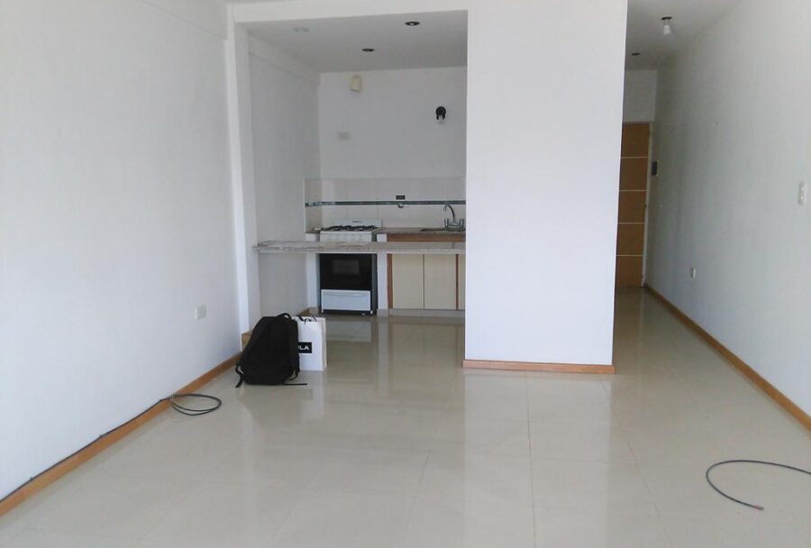 Ambiente amplio y luminoso, cocina separa por barra desayunadora y baño completo.